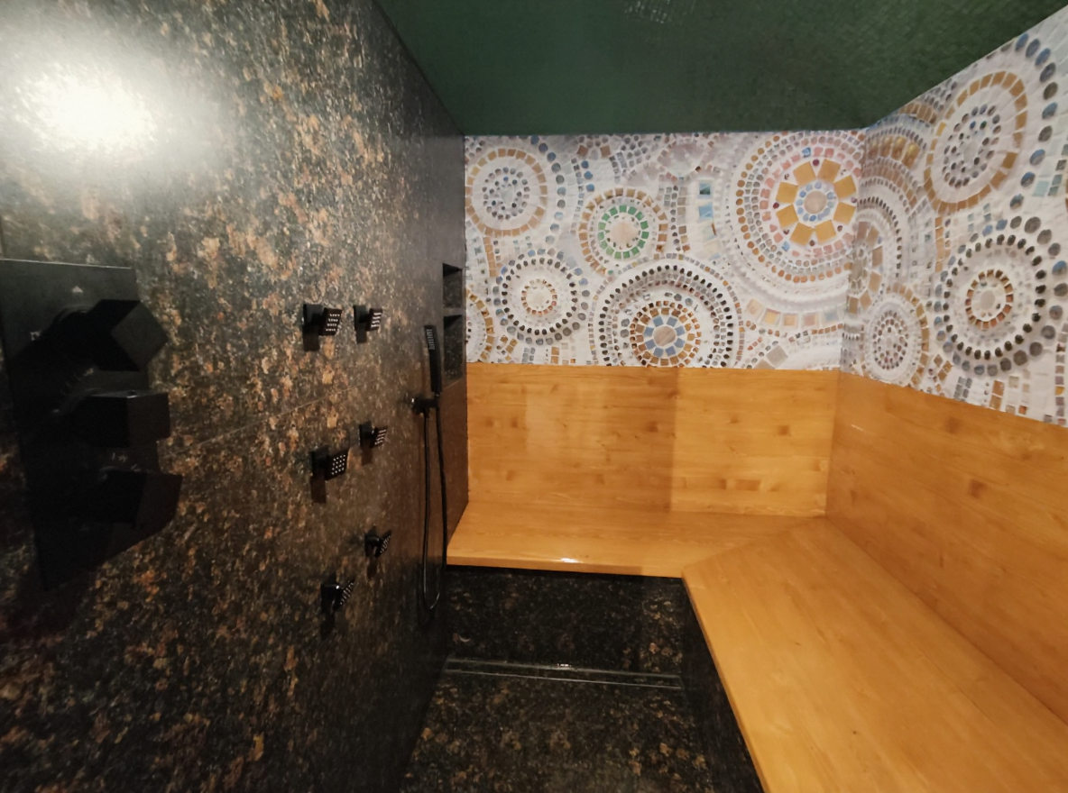 - СПА зона до 4 человек со скамейками, тропическим душем и гидромассажем