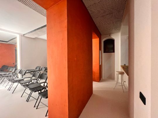- Трансформация общего зала 40м2 под разные форматы мероприятия за счёт раскладных столов и стульев, которые при необходимости убираются